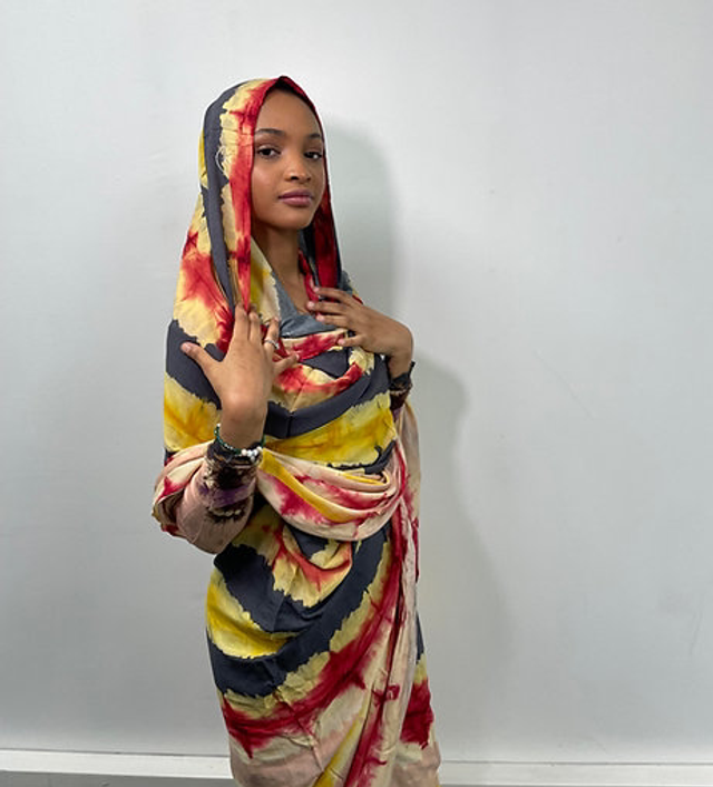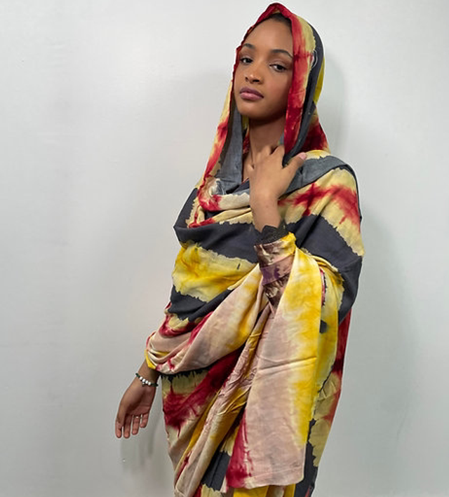 Il s’agit de la tenue traditionnelle des femmes songhaï, maures et mauritaniennes.