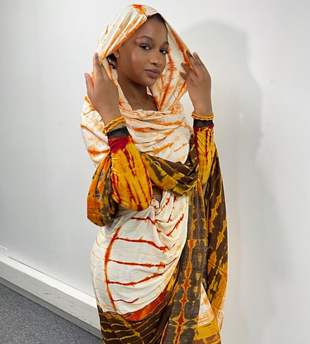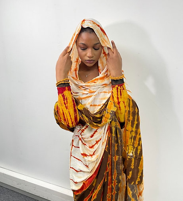 Il s’agit de la tenue traditionnelle des femmes songhaï, maures et mauritaniennes.