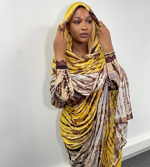Il s’agit de la tenue traditionnelle des femmes songhaï, maures et mauritaniennes.