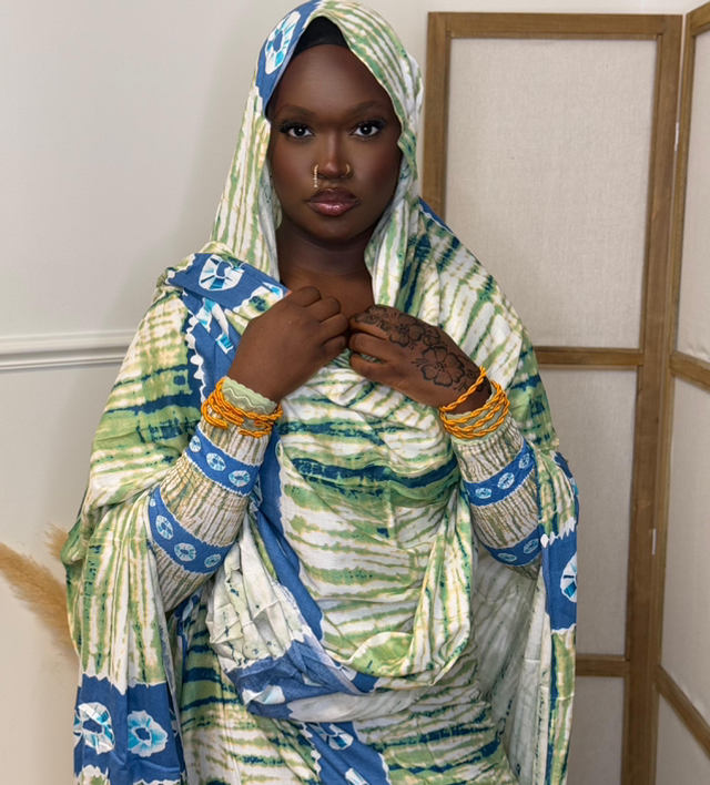 Il s’agit de la tenue traditionnelle des femmes songhaï, maures et mauritaniennes.