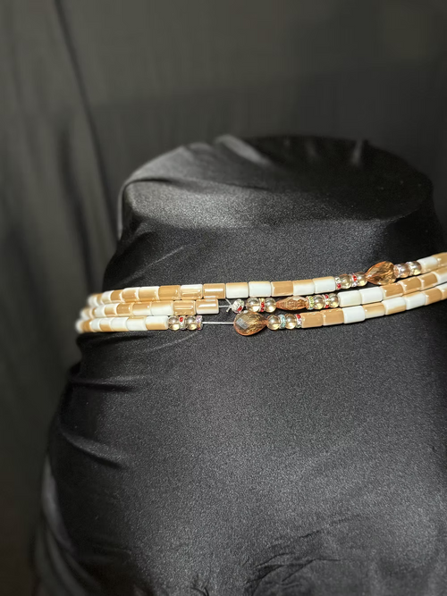 Porté autour de la taille, le baya sublime les courbes et habille les reins avec délicatesse. Faits à la main et ajustables, nos bayas s'adaptent à toutes les morphologies et se portent seuls ou à plusieurs selon l'effet recherché.